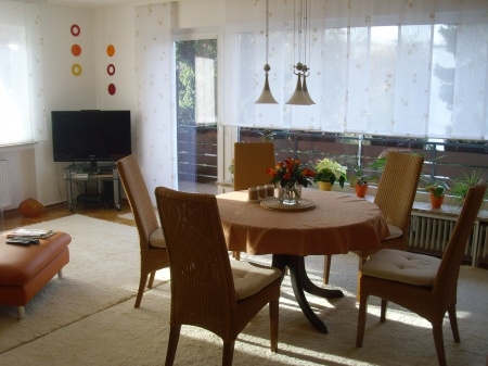 Der großen Balkon ist direkt vom Wohnzimmer aus begehbar, nehmen Sie Platz, entspannen Sie hier und genießen ganztägig die Sonne.