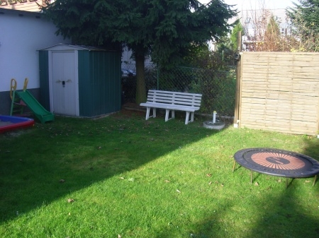 Im gemeinschaftlich nutzbaren Garten, befindet sich eine Spielecke für Kinder und Sitzgelegenheit für die Erwachsenen.